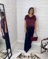 “Shellie” Satin Top with Rib Trimming