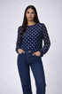 This lightweight mesh top features a soft, semi-sheer fabric with an all-over polka dot pattern for an airy, feminine feel. Designed with a classic round neckline and long sleeves, it can add subtle volume and a refined finish. The relaxed silhouette drapes effortlessly, making it easy to wear tucked in or loose. Perfect for layering over a camisole, under a sleeveless knit, or styling on its own, it balances playful texture with everyday elegance.