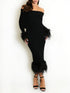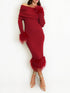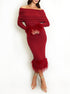 “Monica” Knitted Bardot MIDI Dress with Fur Detail