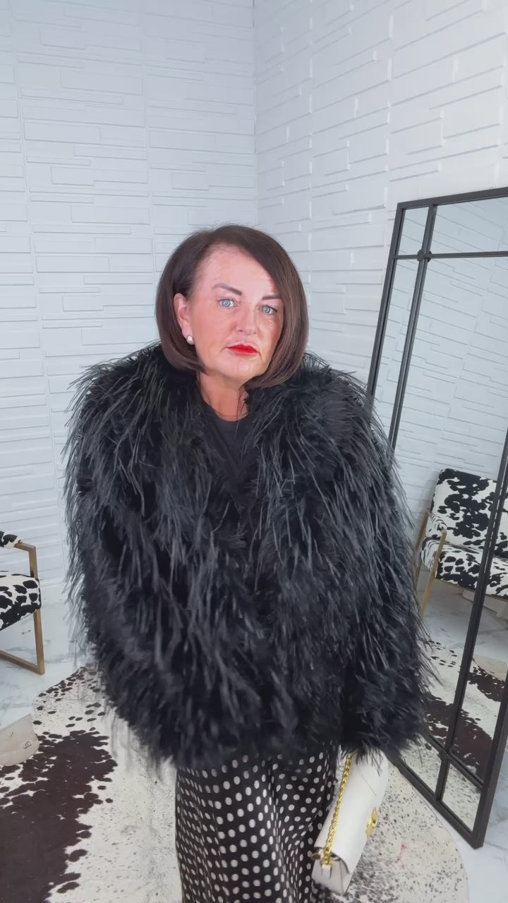 Our stunning feather Olivia jacket can be dressed up or down this AW.