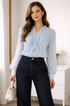 The delicate button-front detail and gently gathered cuffs add refined structure, while the relaxed silhouette offers effortless comfort. Whether styled with tailored trousers for the office or paired with your favorite denim for a chic daytime look, this blouse transitions seamlessly from work to weekend.